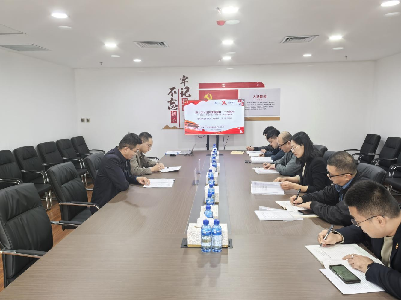 10月24日聯(lián)合產(chǎn)權(quán)黨支部開展10月黨員大會暨“不忘初心 牢記使命”主題黨日、黨章專題學(xué)習(xí),黨支部副書記主持,投控集團黨委副書記、紀委書記車向前同志,紀檢專員楊日誠同志及支部黨員參加會議。