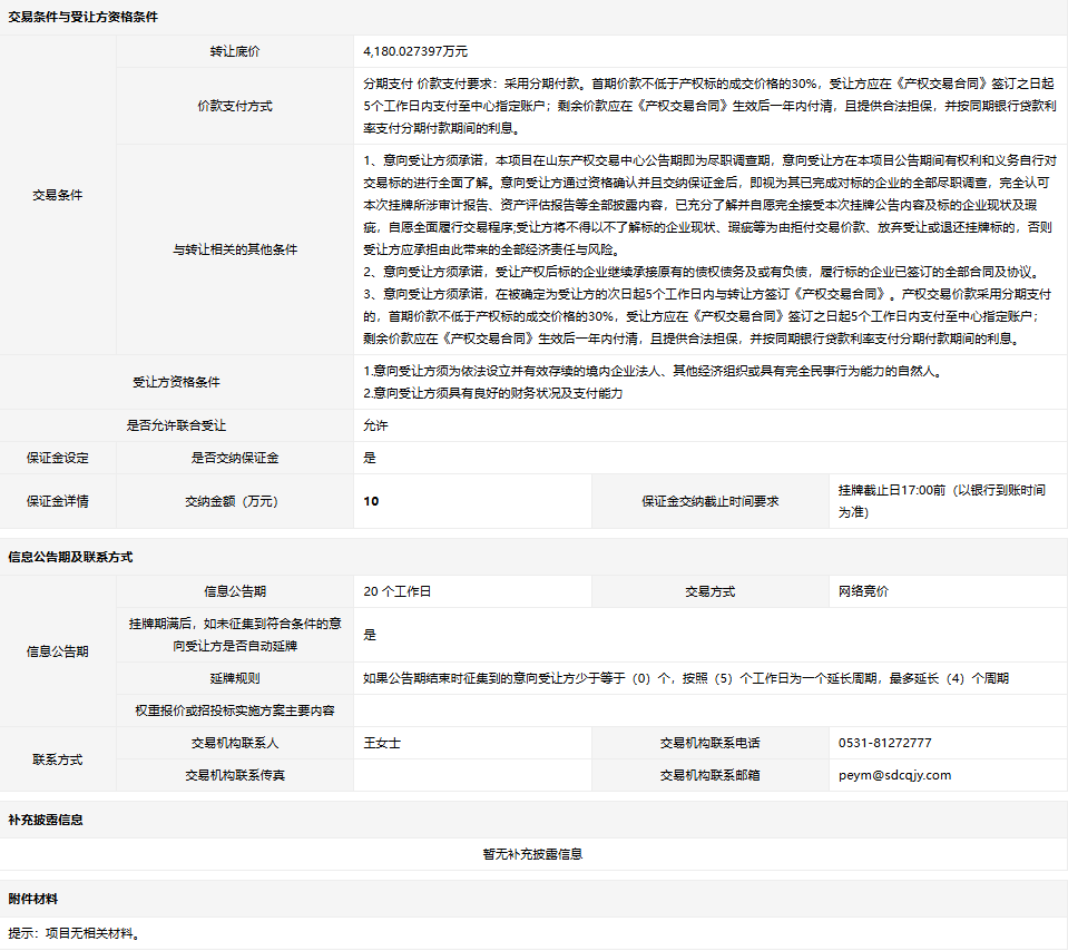 轉(zhuǎn)讓底價(jià): 4180.027397萬元