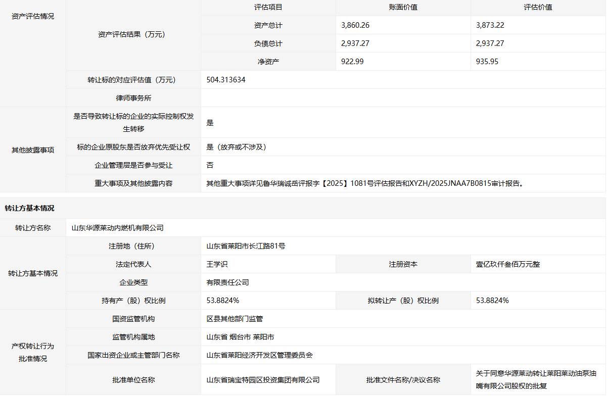 • 轉(zhuǎn)讓方: 山東華源萊動(dòng)內(nèi)燃機(jī)有限公司