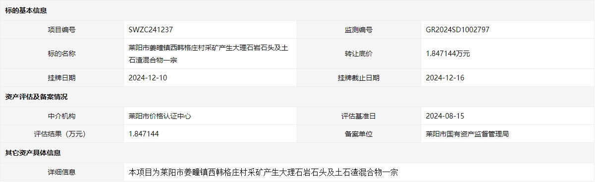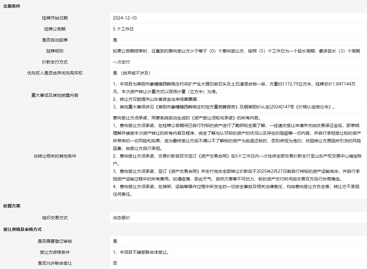掛牌起止日期:2024年12月10日至2024年12月16日