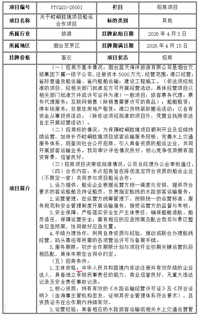 掛牌起止日期:2026年4月3日至2026年4月15日