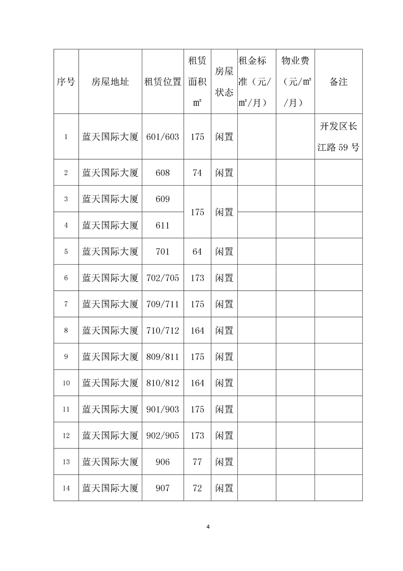 開發(fā)區(qū)長江路59號(hào)藍(lán)天大廈部分房屋招租