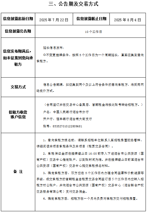 掛牌起止日期:2025年7月22日至2025年8月4日