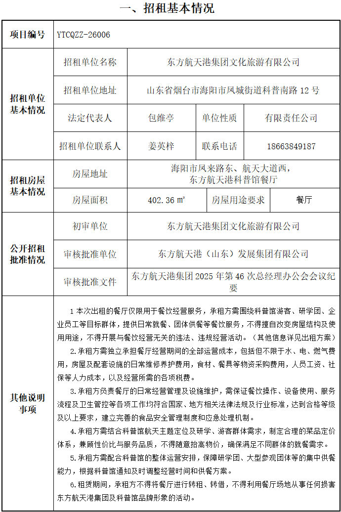 東方航天港科普館餐廳租賃運(yùn)營(yíng)服務(wù)項(xiàng)目