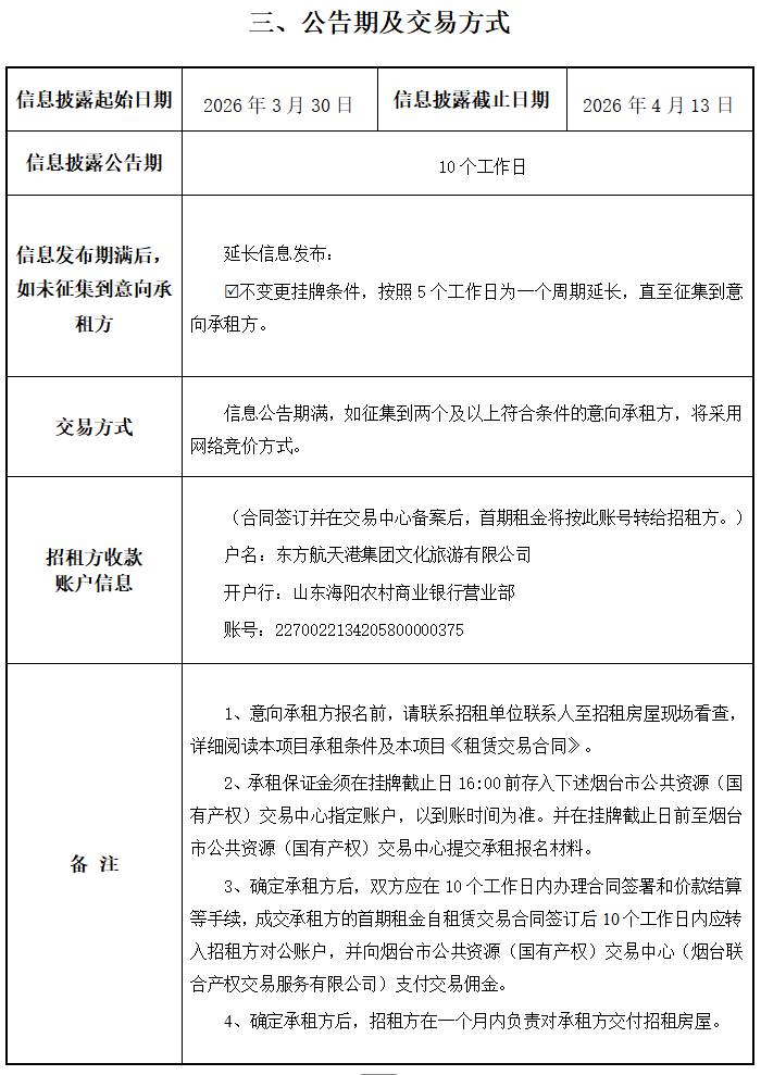 掛牌起止日期:2026年3月30日-2026年4月13日