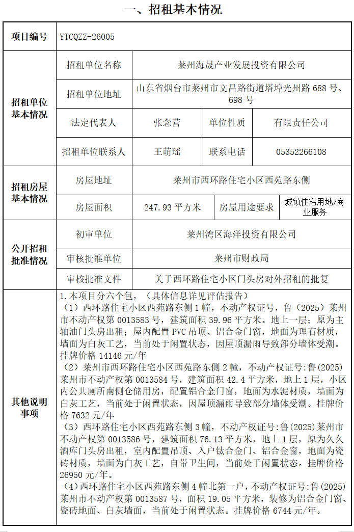 蓬萊區(qū)南王街道北王村北王汽修廠北院招租公告