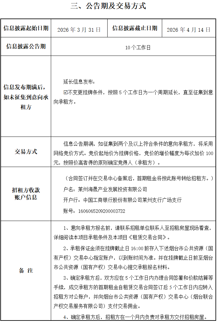 掛牌起止日期:2026年3月31日-2026年5月8日