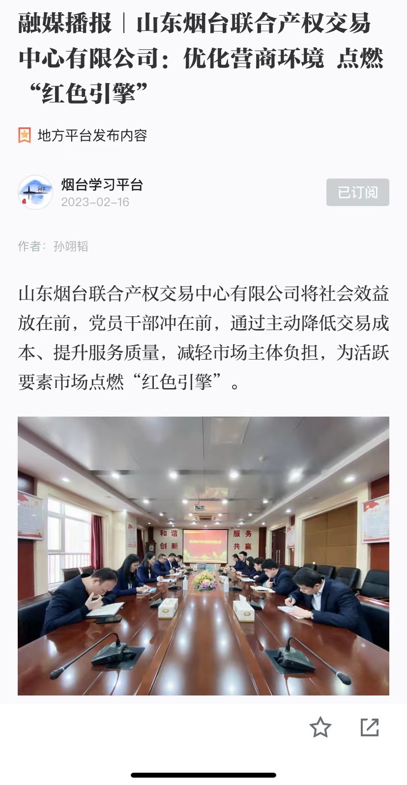 近日,“學(xué)習(xí)強(qiáng)國”煙臺(tái)平臺(tái)、煙臺(tái)日?qǐng)?bào)社大小新聞網(wǎng)、大眾網(wǎng)煙臺(tái)刊發(fā)署名文章《煙臺(tái)聯(lián)合產(chǎn)權(quán)為優(yōu)化營商環(huán)境點(diǎn)燃“紅色引擎”當(dāng)好市場(chǎng)“店小二”》,全面介紹了2022年煙臺(tái)聯(lián)合產(chǎn)權(quán)作為要素市場(chǎng)交易平臺(tái),肩負(fù)著為參與各類資源交易的市場(chǎng)主體提供集成化服務(wù)的責(zé)任,在推動(dòng)營商環(huán)境建設(shè)方面,毫不猶豫將社會(huì)效益放在前,讓黨員干部沖在前,通過主動(dòng)降低交易成本、提升服務(wù)質(zhì)量和服務(wù)效果減輕市場(chǎng)主體負(fù)擔(dān)、為活躍要素市場(chǎng)點(diǎn)燃“紅色引擎”。