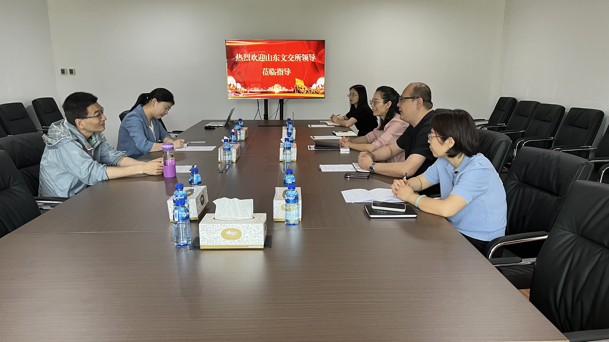 6月7日,山東文化產權交易所總經理孟敏、副總經理李鳴一行到訪煙臺聯合產權,就交易場所建設、交易平臺改革和業(yè)務運行情況、創(chuàng)新業(yè)務拓展等內容進行了深入交流。煙臺聯合產權領導班子及相關部室人員一同參會。